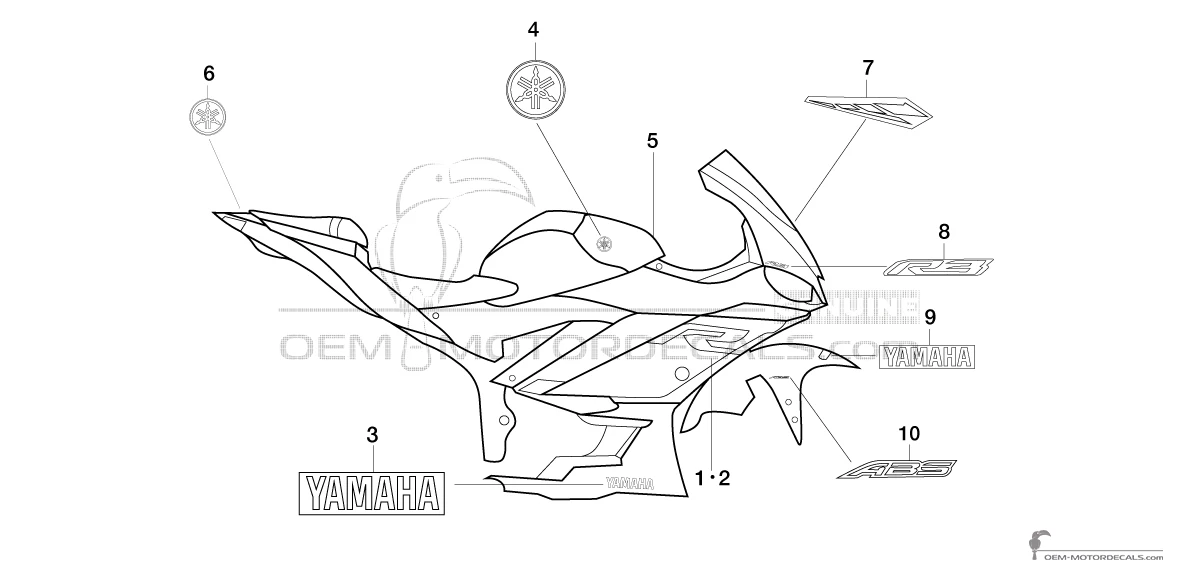 Adesivi per Yamaha YZF R3 2019 - Blu • Yamaha Adesivi OEM