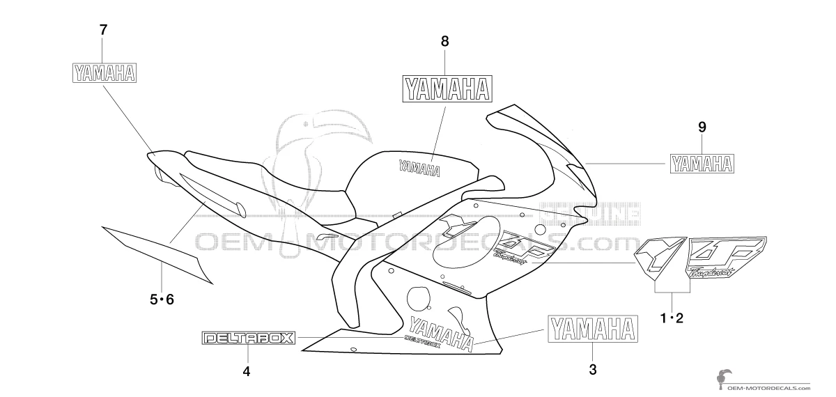 Adesivi per Yamaha YZF600R THUNDERCAT 1998 - Nero • Yamaha Adesivi OEM