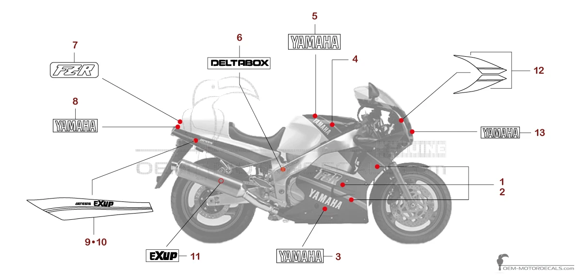Stickers voor Yamaha FZR1000 1990 - Zwart • Yamaha OEM Stickers