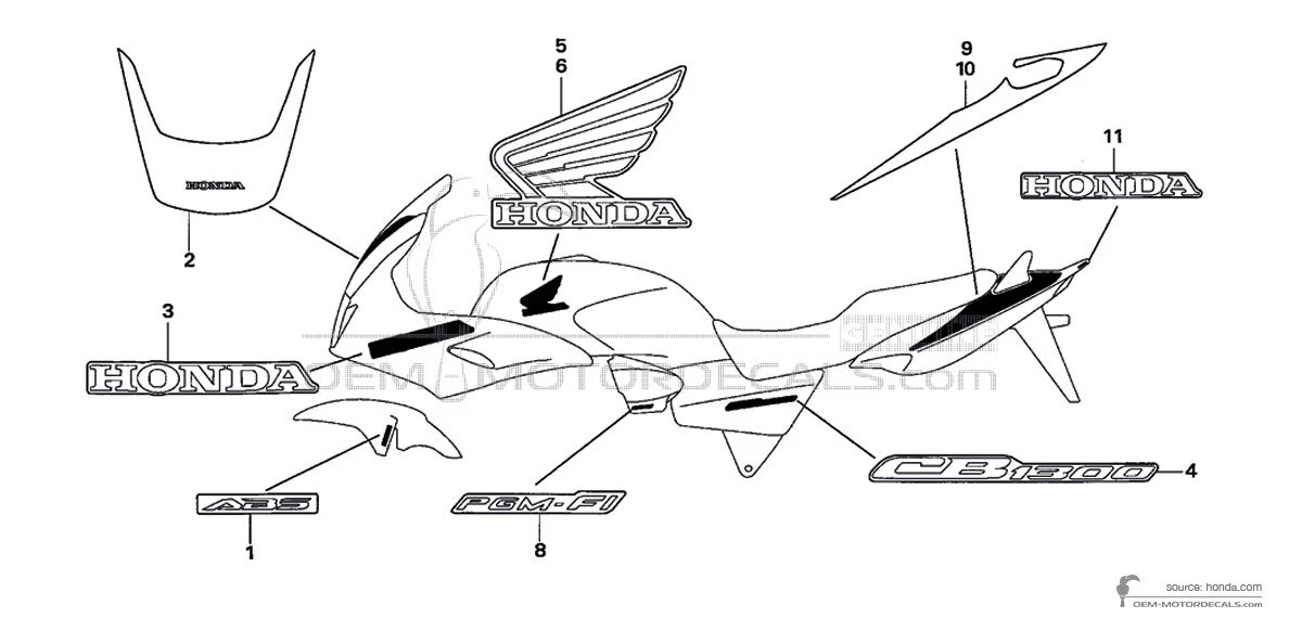 Stickers voor Honda CB1300S 2005 - Wit • Honda OEM Stickers
