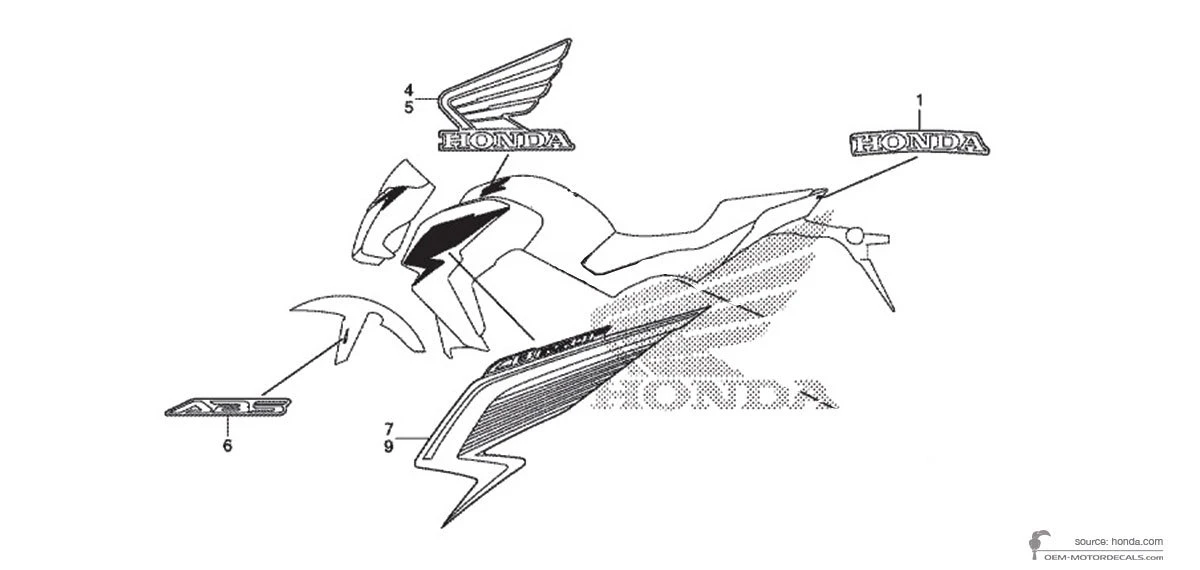 Stickers voor Honda CB650F 2014 - Zwart • Honda OEM Stickers