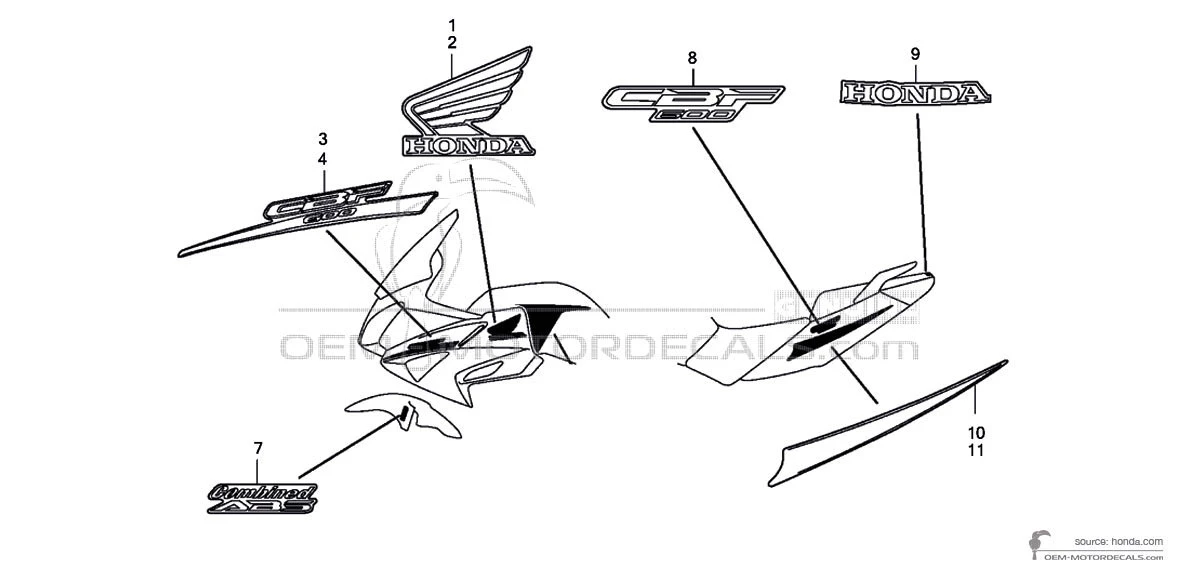Stickers voor Honda CBF600S 2010 - Zwart • Honda OEM Stickers