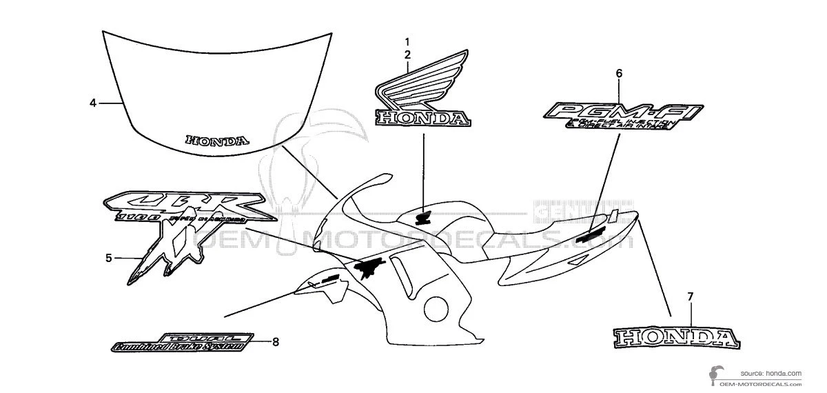 Stickers voor Honda CBR1100XX SUPER BLACKBIRD 2003 - Zwart • Honda OEM Stickers