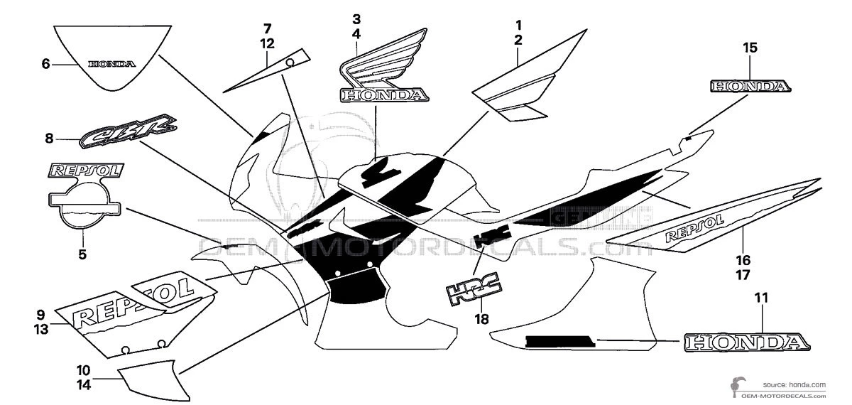 Stickers voor Honda CBR125R 2006 - Oranje • Honda OEM Stickers