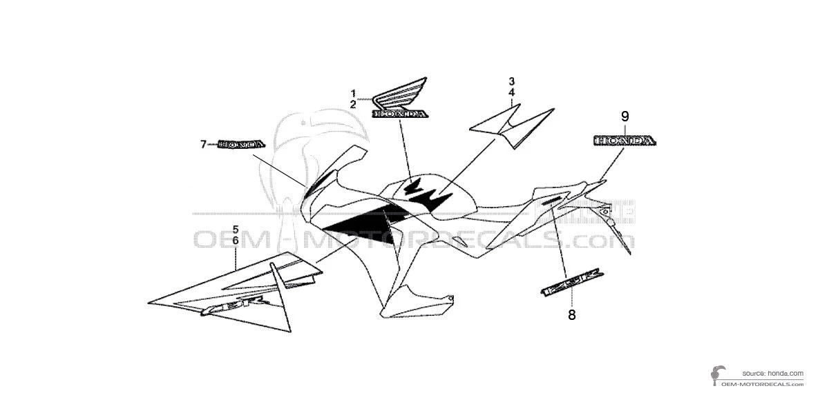 Stickers voor Honda CBR125R 2012 - Zwart • Honda OEM Stickers