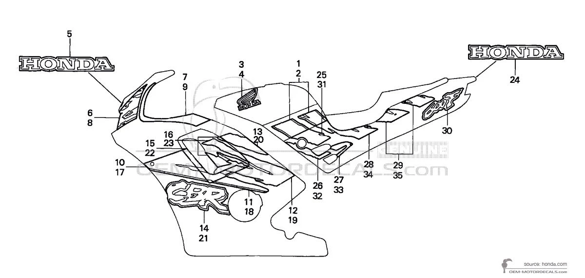 Stickers voor Honda CBR600F HURRICANE 1993 - Zwart • Honda OEM Stickers