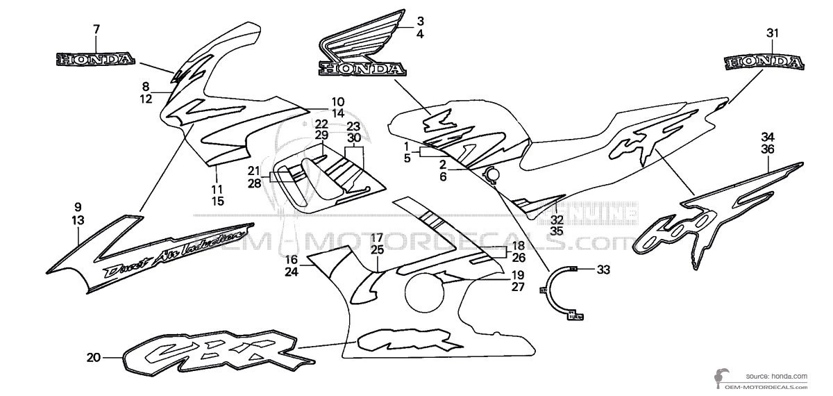 Stickers voor Honda CBR600F HURRICANE 1998 - Rood • Honda OEM Stickers
