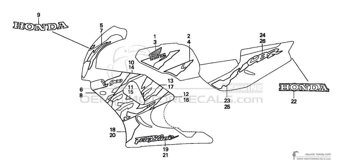 HONDA Kontpaneel sticker - 77251MAS670ZB (77251-MAS-670ZB MARK, TAIL COVER *TYPE4*) Dit is een origineel reserveonderdeel gemaakt door Honda. Originele stickers herstellen niet alleen de fabriekslook van de motorfiets, maar besparen ook je tijd en, interessant genoeg, je geld. Dit is wat OEM-emble..