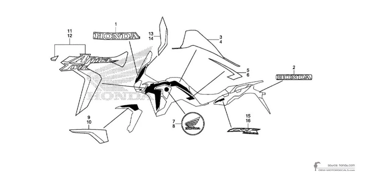 Stickers voor Honda CRF1000 AFRICA TWIN 2016 - Rood • Honda OEM Stickers