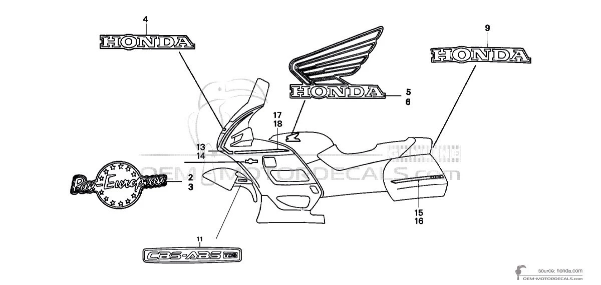Stickers voor Honda ST1100 ABS PAN EUROPEAN 1996 - Zwart • Honda OEM Stickers