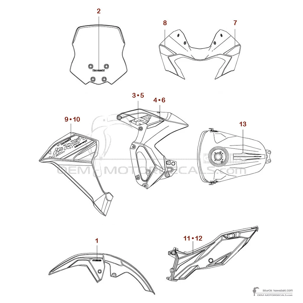 Stickers voor Kawasaki KLE300 VERSYSX 2023 - Grijs • Kawasaki OEM Stickers