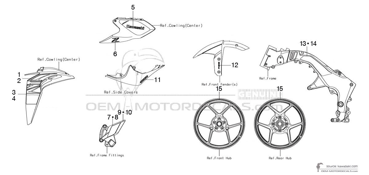 Stickers voor Kawasaki Z1000 2017 - Zwart • Kawasaki OEM Stickers