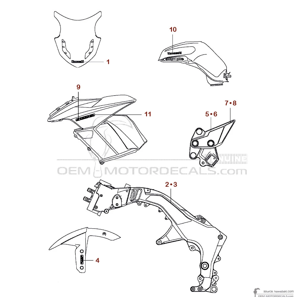 Stickers voor Kawasaki Z1000SX 2015 - Zwart • Kawasaki OEM Stickers