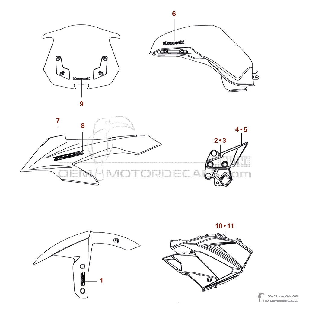 KAWASAKI Zijpaneel sticker, rechterkant - 560757273 (56075-7273 PATTERN,SIDE COWL.,RH)  Dit is een origineel reserveonderdeel gemaakt door Kawasaki.  Originele stickers herstellen niet alleen de fabriekslook van de motorfiets, maar besparen ook je tijd en, interessant genoeg, je geld. Dit is wat OEM.. Beschikbaarheid controleren |