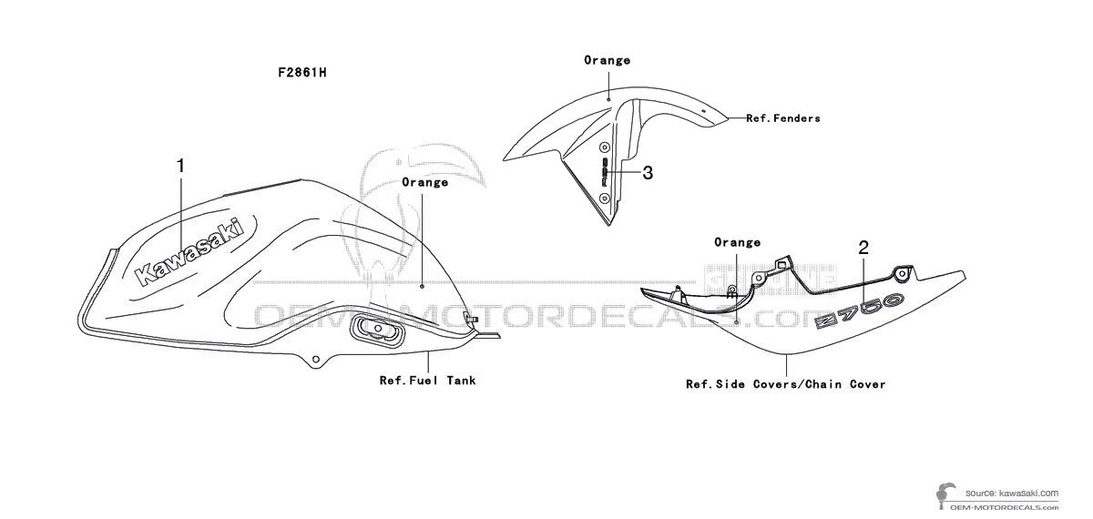 Stickers voor Kawasaki Z750 2010 - Oranje • Kawasaki OEM Stickers