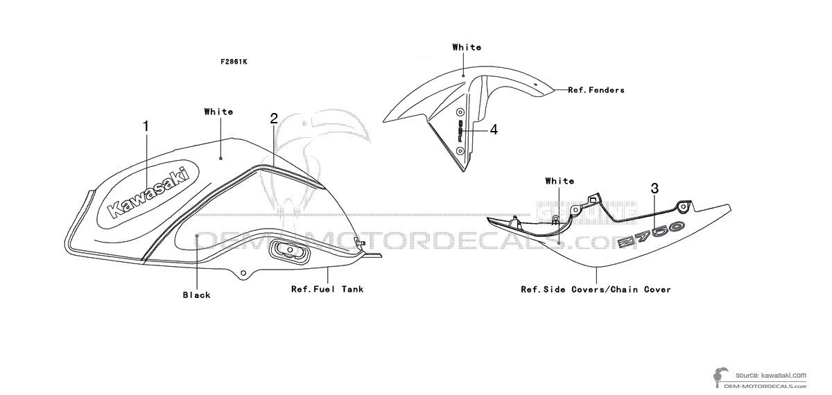 Stickers voor Kawasaki Z750 2010 - Wit • Kawasaki OEM Stickers