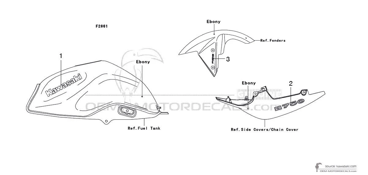 Stickers voor Kawasaki Z750 2011 - Zwart • Kawasaki OEM Stickers