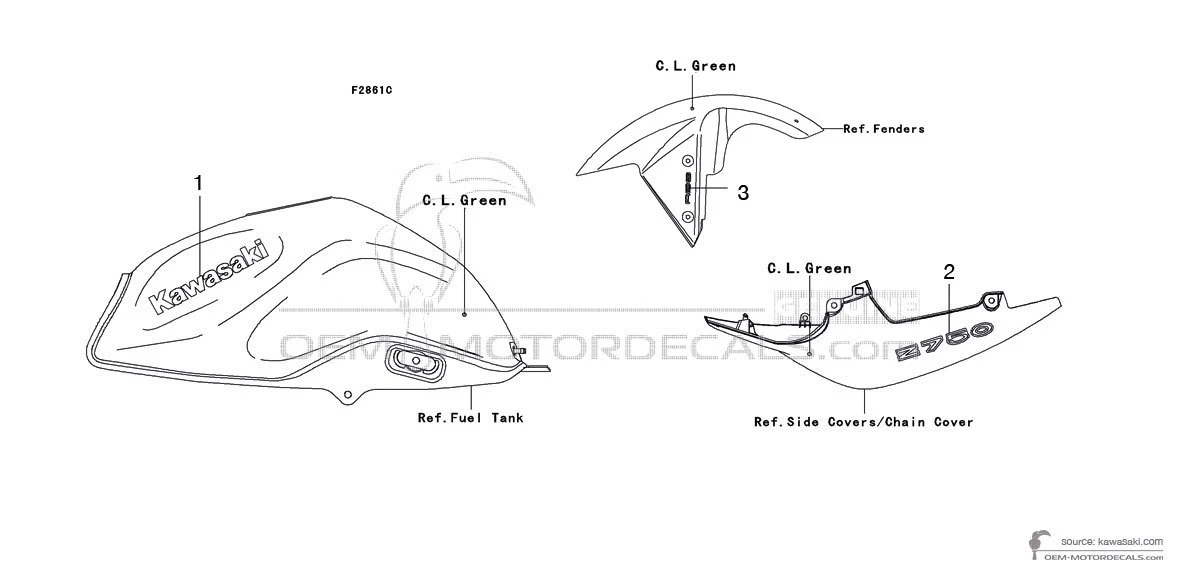 Stickers voor Kawasaki Z750 2012 - Groen • Kawasaki OEM Stickers