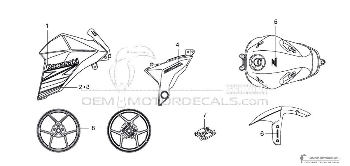 KAWASAKI Tankpadset - 168TPT0060 (168TP-T0060 TANKPAD SET Z (Z800)) Dit is een origineel reserveonderdeel gemaakt door Kawasaki. Originele stickers herstellen niet alleen de fabriekslook van de motorfiets, maar besparen ook je tijd en, interessant genoeg, je geld. Dit is wat OEM-emblemen ondersche..