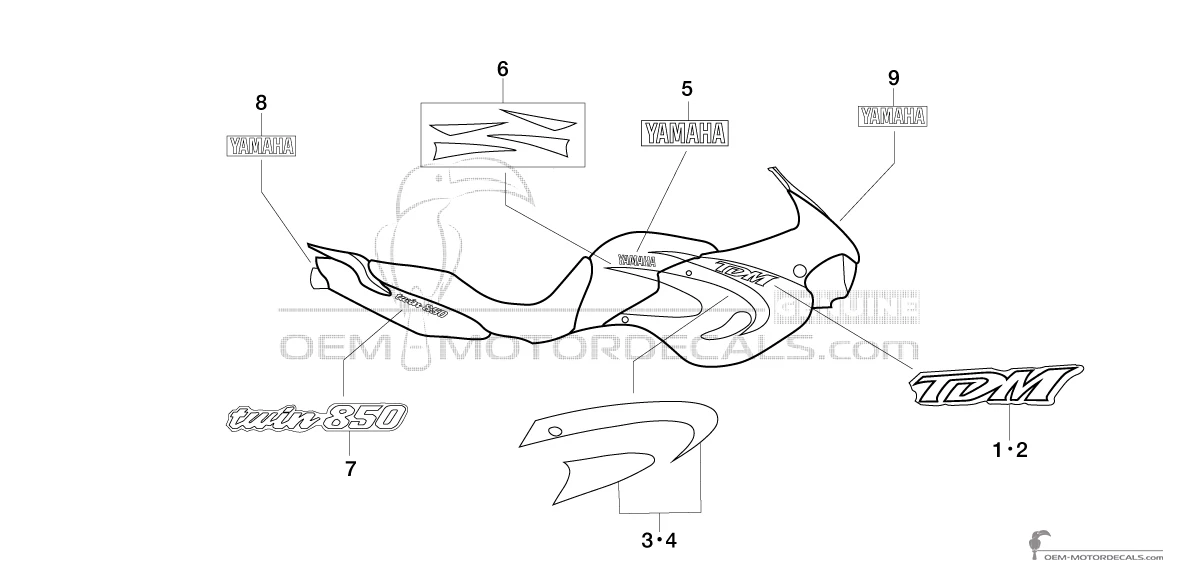 Stickers voor Yamaha TDM850 2000 - Rood • Yamaha OEM Stickers