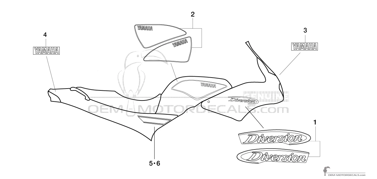 Stickers voor Yamaha XJ600S DIVERSION 1995 - Blauw • Yamaha OEM Stickers