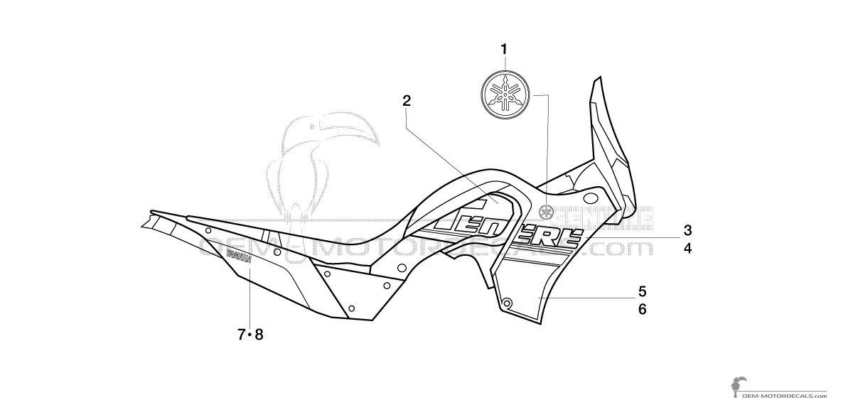 YAMAHA Zijpaneel sticker, linkerkant - BEHF83931000 (BEH-F8393-10-00 GRAPHIC 3) Dit is een origineel reserveonderdeel gemaakt door Yamaha. Originele stickers herstellen niet alleen de fabriekslook van de motorfiets, maar besparen ook je tijd en, interessant genoeg, je geld. Dit is wat OEM-emblemen..