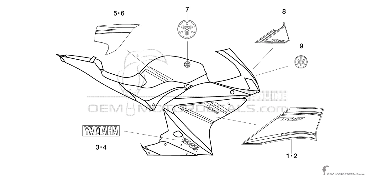 Stickers voor Yamaha YZF R125 2009 - Zwart • Yamaha OEM Stickers