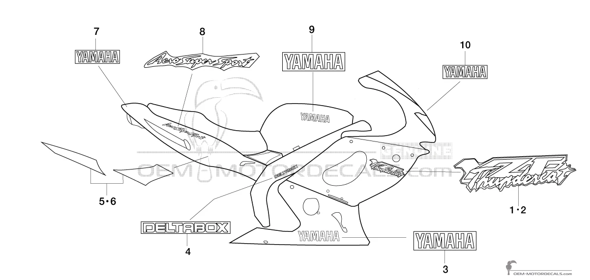 Stickers voor Yamaha YZF600R THUNDERCAT 1997 - Rood • Yamaha OEM Stickers