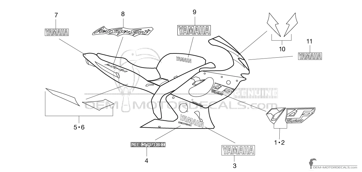 Stickers voor Yamaha YZF600R THUNDERCAT 1998 - Rood • Yamaha OEM Stickers