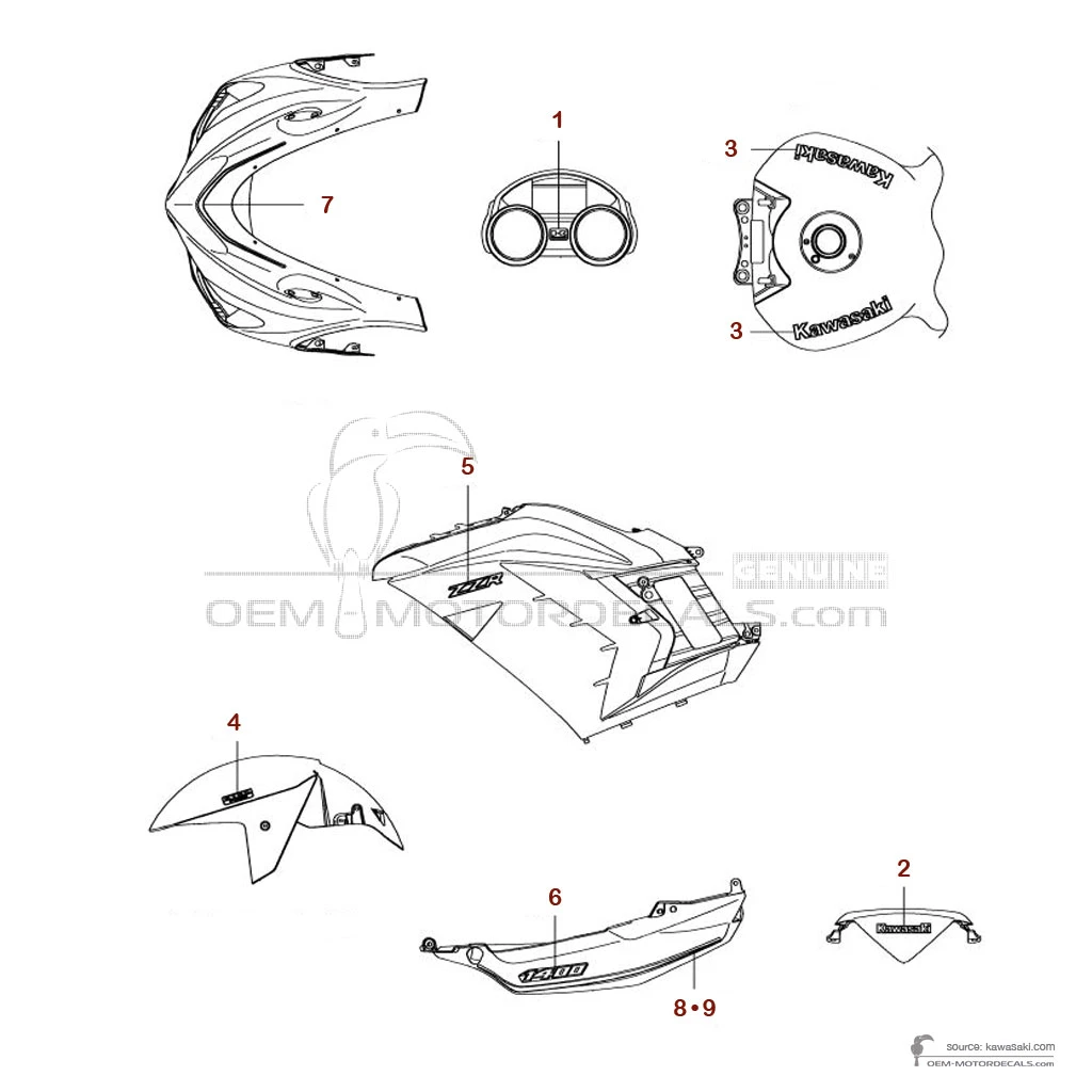 Stickers voor Kawasaki ZZR1400 2017 - Zwart • Kawasaki OEM Stickers