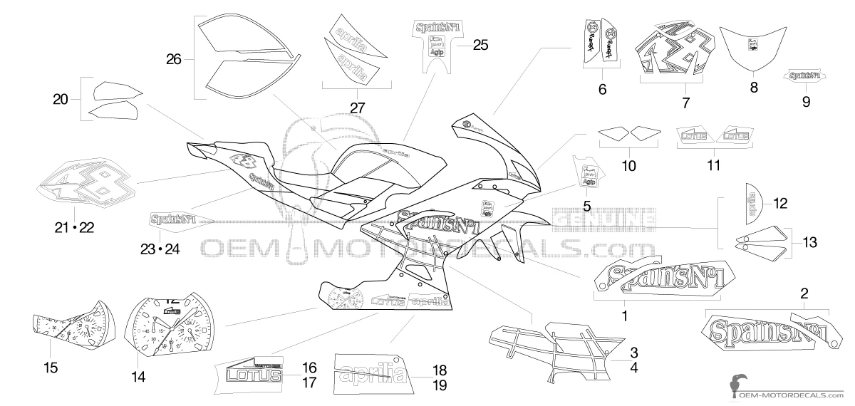 APRILIA Naklejka na osłonę boczną - 852352A5 ( FAIRING DECAL SET (PART OF SET))To oryginalna część zamienna wyprodukowana przez Aprilia. Oryginalne naklejki nie tylko przywrócą fabryczny wygląd motocykla, ale także oszczędzą Twój czas i co ciekawe Twoje pieniądze. Oto co wyróżnia naklejki OEM na tle..