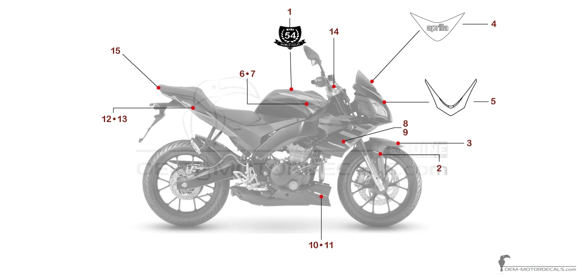 Naklejki do Aprilia TUONO 125 2020 - Czerwony • Aprilia Naklejki OEM