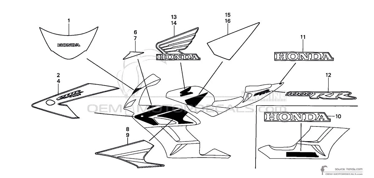 Naklejki do Honda CBR1000RR FIREBLADE 2004 - Biały • Honda Naklejki OEM