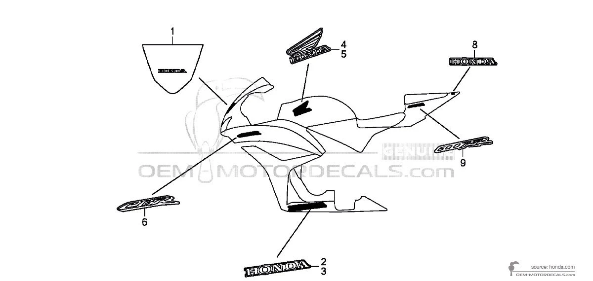 Naklejki do Honda CBR600RR 2008 - Czarny • Honda Naklejki OEM