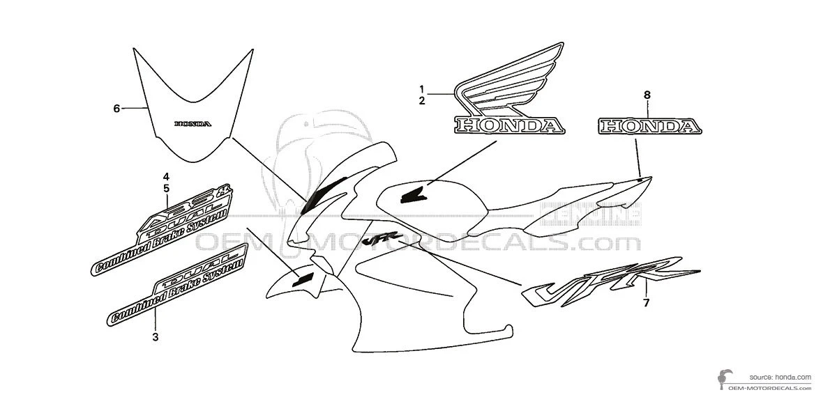 Naklejki do Honda VFR800 VTEC 2006 - Srebrny • Honda Naklejki OEM