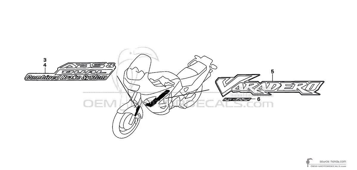 Naklejki do Honda XL1000V VARADERO 2005 - Czarny • Honda Naklejki OEM