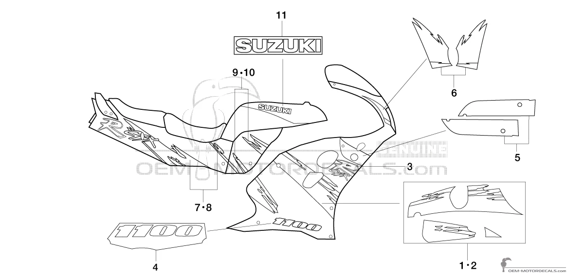 Naklejki do SUZUKI GSXR1100 1993 - Szary • Suzuki Naklejki OEM