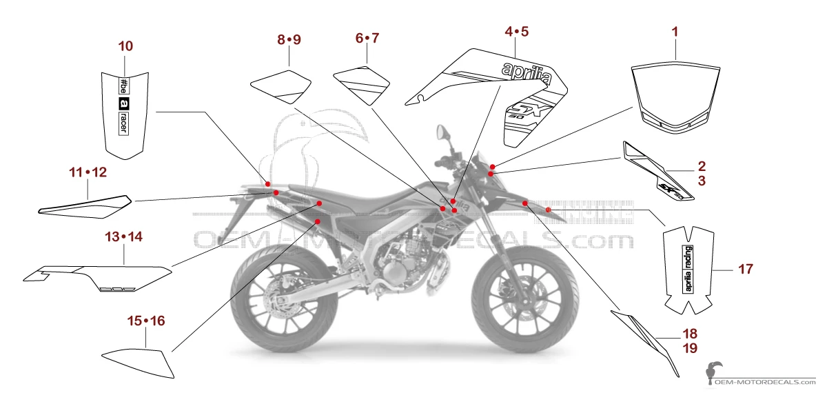 Naklejki do Aprilia SX50 2019 - Czerwony • Aprilia Naklejki OEM